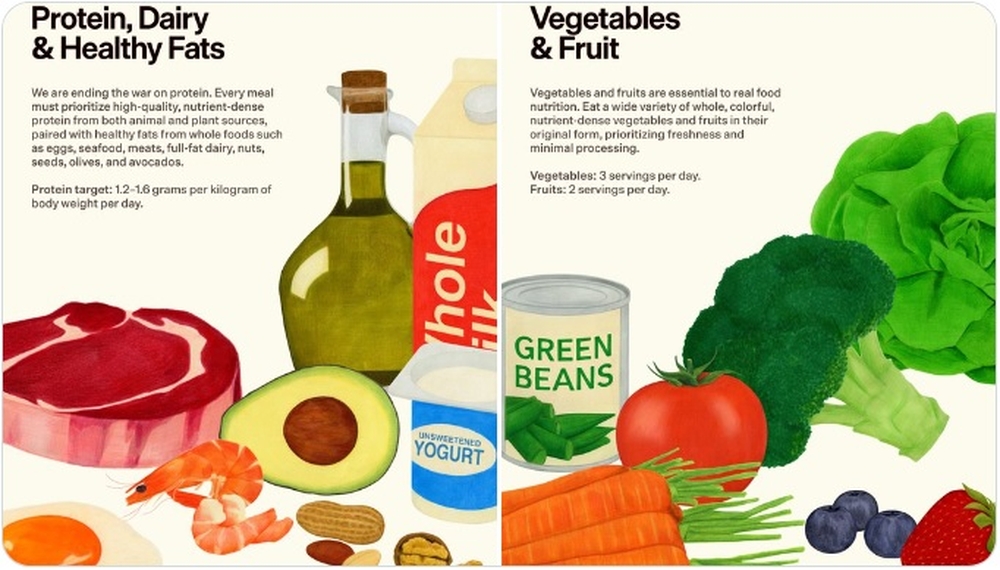 Περισσότερη πρωτεΐνη, συμπεριλαμβανομένου του κόκκινου κρέατος. Επέστρεψαν τα γαλακτοκομικά προϊόντα πλήρους λιπαρών. Μείωση της προστιθέμενης ζάχαρης στο 2% των συνολικών θερμίδων. Αποφυγή των πολύ επεξεργασμένων τροφίμων. Κατανάλωση περισσότερο λίπους, βούτυρο και ελαιόλαδο. Εξαιρετικά θετικό ότι οι επεξεργασμένοι υδατάνθρακες, εκτεταμένα στοιχεία για τους οποίους τους εμπλέκουν ως κύριο παράγοντα χρόνιας νόσου, έχουν εκλείψει.