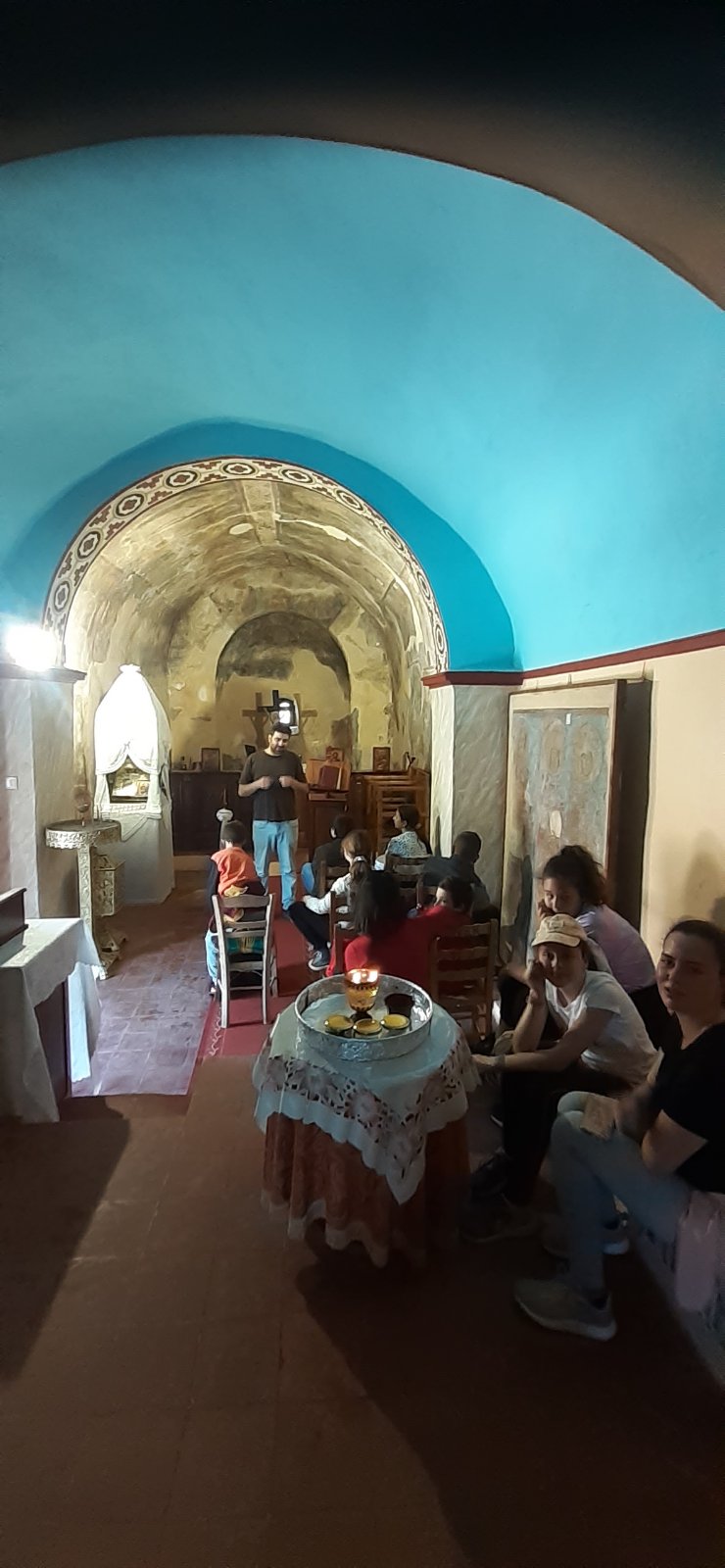Οι νέοι της ομάδας μας είχαν την αντίστοιχη ευκαιρία να περιηγηθούν από τους καθηγητές Νίκη Μίχα και Ιπποκράτη Ταυλάριο σε εκκλησίες και μνημεία του Βαθύ, όπως το μετόχι της Παναγίας Κυρά Ψηλής, τον παλαιοχριστιανικό ναό του Ταξιάρχη και τον μοναδικό ναό της Παναγίας Χωστής με τον θρύλο που τον συνοδεύει: