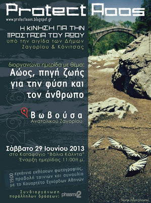 Επί ένα μήνα έξι Έλληνες φωτογράφοι, κατέγραφαν με τον φακό τους την καθημερινότητα, την φύση και τους κατοίκους της Βοβούσας, το μικρό ορεινό χωριό, στο Aνατολικό Ζαγόρι, που αντιτίθεται στο σχέδιο εκτροπής υδάτων του ποταμού Αώου στη λίμνη Ιωαννίνων. Το ερχόμενο Σάββατο, 29 του μηνός, οι φωτογραφίες τους θα φιλοξενηθούν σε ένα μικρό εργαστήριο ξυλείας, σε έναν αχυρώνα και μια αποθήκη της Βοβούσας, στα πλαίσια της ημερίδας «Αώος, Πηγή ζωής για τη Φύση και τον ‘Ανθρωπο», που διοργανώνει η Κίνηση για την Προστασία του Αώου, υπό την αιγίδα των Δήμων Ζαγορίου και Κόνιτσας. Στην ομαδική έκθεση «Βοβούσα: Μοναδική και όχι Μόνη» συμμετέχουν οι φωτογράφοι της ομάδας«Phasma2», Ανδρονίκη Χριστοδούλου, Γιώργος Βιτσαρόπουλος, Γιώργος Δέτσης, Στέλιος Ματσάγγος, Αλέξανδρος Σταματίου, Νίκος Παλαιολόγος. Παράλληλα, οι μαθητές του μονοθέσιου δημοτικού σχολείου της Βοβούσας εκθέτουν τις δικές τους φωτογραφίες με θέμα τους γείτονές τους, τους συμμαθητές, το χωριό, τον Αώο. Επίσης το ερχόμενο Σαββατοκύριακο, θα προβληθεί το ντοκιμαντέρ του Δημήτρη Κουτσιαμπασάκου “Ο Ηρακλής, ο Αχελώος και η Γιαγιά μου”, ενώ στην Βοβούσα, θα βρεθεί και το Κουαρτέτο Εγχόρδων της Αθήνας, για μια συναυλία. «Σήμερα, υπάρχει η πρόθεση να κατασκευαστεί ένα νέο φράγμα, που θα εκτρέψει τα νερά του Αώου προς τη λίμνη των Ιωαννίνων. Ένα τέτοιο ενδεχόμενο κινδυνεύει να σημάνει το απότομο τέλος του ταξιδιού του ποταμού προς την Αδριατική, όπου και εκβάλλει, στερώντας τη Βοβούσα, την Κόνιτσα αλλά και την Αλβανία από τα νερά του, που θα εγκλωβιστούν στο νέο φράγμα της κοινοπραξίας ΤΕΡΝΑ Ενεργειακή Α.Ε.- ΔΕΗ Α.Ε.