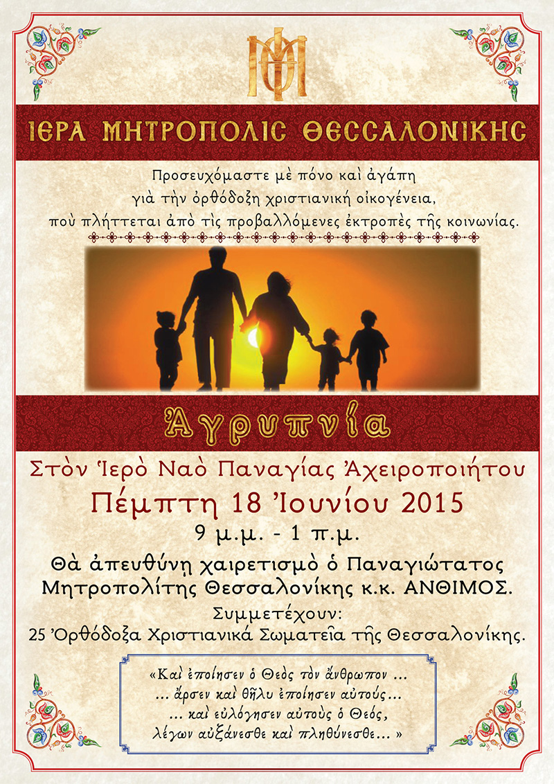 17 Ιουνίου 2015 σε ΑΝΑΚΟΙΝΩΣΕΙΣ ΠΑΛΑΙΕΣ Ετικέτες - Σχετικά Θέματα 18 ΙΟΥΝΙΟΥ 2015 ΑΓΡΥΠΝΙΑ ΙΕΡΑ ΜΗΤΡΟΠΟΛΗ ΘΕΣΣΑΛΟΝΙΚΗΣ ΙΕΡΟΣ ΝΑΟΣ ΠΑΝΑΓΙΑΣ ΑΧΕΙΡΟΠΟΙΗΤΟΥ Επόμενο Προηγούμενο