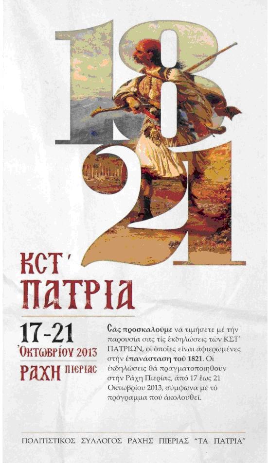 ΕΛΛΗΝΙΚΗ ΕΠΑΝΑΣΤΑΣΗ ΠΑΤΡΙΑ 2013 ΠΑΤΡΙΑ 2013 ΡΑΧΕΣ ΠΙΕΡΙΑΣ