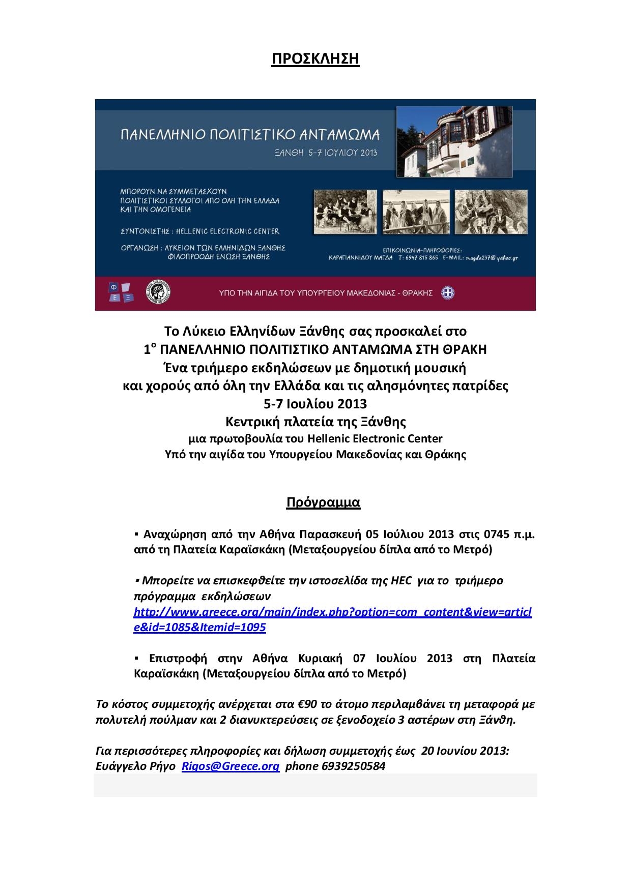 ΠΟΛΙΤΙΣΤΙΚΟ ΑΝΤΑΜΩΜΑ ΣΤΗ ΘΡΑΚΗ