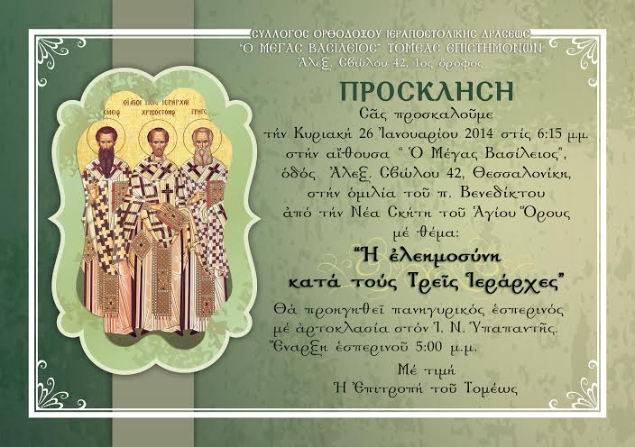 25 Ιανουαρίου 2014 σε ΑΝΑΚΟΙΝΩΣΕΙΣ ΠΑΛΑΙΕΣ Ετικέτες - Σχετικά Θέματα Η ΕΛΕΥΜΟΣΥΝΗ ΚΑΤΑ ΤΟΥΣ ΤΡΕΙΣ ΙΕΡΑΡΧΕΣ ΤΡΕΙΣ ΙΕΡΑΡΧΕΣ Επόμενο Προηγούμενο