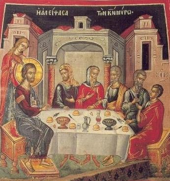 Σύμφωνα με τον ιερό ευαγγελιστή ο Ιησούς προσκλήθηκε σε δείπνο στο σπίτι κάποιου Σίμωνος, ο οποίος ανήκε στην τάξη των Φαρισαίων. Κάποια γυναίκα αμαρτωλή όταν έμαθε ότι ο Κύριος ήλθε στην πόλη, ζήτησε να μάθει σε πιο σπίτι έχει καταλύσει. Και ενώ έτρωγαν και συζητούσαν, ξάφνου μπήκε στο σπίτι η γυναίκα εκείνη, κρατώντας στα χέρια της αλαβάστρινο δοχείο γεμάτο πολύτιμο μύρο. Προχώρησε στο μέρος του Ιησού και αφού στάθηκε πίσω Του, γονάτισε και άρχισε να κλαίει και να οδύρεται γοερά. Άνοιξε αμέσως το δοχείο και άρχισε να ρίχνει απλόχερα το μύρο και να πλένει με αυτό πόδια του Ιησού. Μαζί με το πολύτιμο μύρο έσμιγε και τα καυτά δάκρυά της, τα οποία έτρεχαν σαν ποτάμι από τα μάτια της. Αφού άδειασε το δοχείο ξέπλεξε τα πλούσια μαλλιά της και σκούπισε με αυτά τα πόδια Του, καταφιλώντας τα αδιάκοπα.
