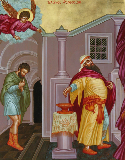 Γι’ αυτό στη σημερινή ευαγγελική περικοπή ο Κύριος παρουσιάζει δύο τύπους ανθρώπων. Ο ένας θεωρείται σαν τον πιο αμαρτωλό τύπο της εποχής του. Παίρνει το παράδειγμα του Τελώνου, τον πιο διαβεβλημένο άνθρωπο της ιουδαϊκής κοινωνίας και τον συγκρίνει μ’ έναν άλλο τύπο, τον Φαρισαίο. Ο Κύριος θέλει να μας διδάξει το πόσο σημαντικό είναι το να έχουμε ειλικρινή μετάνοια και να προσευχόμαστε με τον σωστό τρόπο. Και πράγματι, ο Τελώνης με ειλικρινή μετάνοια και συναίσθηση της αμαρτωλότητάς του, με βαθιά ταπείνωση στάθηκε σε κάποια γωνιά, σε κάποια απόσταση από τα άγια και με ταπεινό φρόνημα απευθύνει στον Κύριο έξι μόνον λέξεις, που ήσαν αρκετές για να του χαρίσουν την δικαίωσή του.