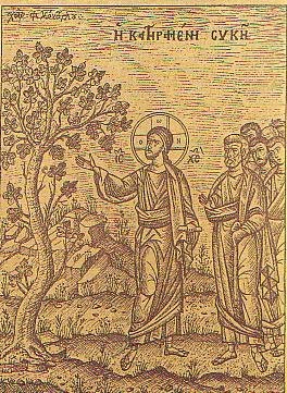 Επίσης την ημέρα αυτή κάνουμε ανάμνηση του διδακτικού γεγονότος της ξηρανθείσης συκής από τον Κύριο που συνέβηκε σύμφωνα με τα ιερά Ευαγγέλια την επομένη ημέρα της θριαμβευτικής Του εισόδου στην Ιερουσαλήμ (Ματθ.21:19,Μαρκ.11:13). Βαδίζοντας σε κάποια οδό πλάι σε συστοιχίες καρποφόρων δένδρων φοινίκων, καρυών και συκιών πείνασε και πλησίασε σε κάποια συκιά για να συλλέξει ορισμένους καρπούς. Όμως το συγκεκριμένο δένδρο, ενώ είχε πλούσιο φύλλωμα, δεν είχε καρπούς. Τότε ο Ιησούς είπε σε αυτή: «Μηκέτι εκ σου καρπός γένηται εις τον αιώνα΄ και εξηράνθη παραχρήμα η συκή» (Ματθ.21:19). Με αυτόν τον περίεργο και παραστατικό τρόπο θέλησε ο Κύριος να διδάξει στους μαθητές Του την ανάγκη να παράγουμε πνευματικούς καρπούς. Επίσης η άκαρπος συκή, σύμφωνα με σύγχρονο λόγιο κληρικό «ήτις δια των πλουσίων φύλλων της εσυμβόλιζε την υποκρισίαν των θρησκευτικών αρχόντων, δεν ετιμωρήθη απλώς ως άψυχος συκή, αλλ’ ως εκπροσωπούσα καθόλου μεν το Ιουδαϊκόν έθνος, ιδιαιτέρως δε την Ιουδαϊκήν Συναγωγήν, ήτις μόνον φύλλα έφερεν, ήτοι απλώς περιωρίζετο εις εξωτερικούς τύπους, ουδένα δε καρπόν είχε να επιδείξη. Ο Ιησούς ελθών ει μη μίαν ψευδή υποκρισίαν κατεδίκασε ταύτην εις διηνεκή αποξήρανσιν» (Θ. Σπυροπούλου, Ο Βίος και η Διδασκαλία του Ιησού Χριστού, Αθήναι 1933, σελ.372).