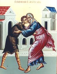 Και να, κάποια μέρα βλέπει από μακριά ένα ρακένδυτο, ανυπόδητο, ρυπαρό και καταβεβλημένο ζητιάνο, να πλησιάζει δειλά-δειλά προς το σπίτι. Η πατρική καρδιά μίλησε, αυτή τον πληροφόρησε ότι είναι ο γιός του. Πρώτος, λοιπόν, τρέχει για να αγκαλιάσει το παιδί του. Αγκάλιασε θερμά το παιδί του, τον φιλούσε ασταμάτητα και δάκρυα χαράς κυλούσαν από γερασμένα μάτιά του. Χωρίς καθυστέρηση δίδει εντολή να τον λούσουν, να τον ντύσουν, να του φορέσουν το δακτυλίδι της εξουσίας και να ετοιμάσουν μεγάλο πανηγύρι. Γιατί, «ο υιός μου ούτος νεκρός ην και ανέζησε, απολωλώς ην και ευρέθη».