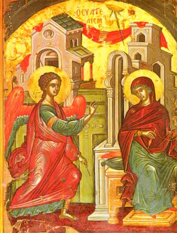 Ὁ Εὐαγγελισμὸς τῆς Θεοτόκου εἶναι ἡ ἀρχὴ τῆς σωτηρίας τοῦ ἀνθρωπίνου γένους. Ὁ Μέγας Στρατηγὸς τῶν ἀΰλων ταγμάτων ἀπεστάλη πρὸς τὴν “Παρθένον Μαριάμ” ἕξι μῆνες μετὰ τὴν σύλληψη τοῦ Τιμίου Προδρόμου, γιὰ νὰ τῆς ἀποκαλύψει τὸ “κεκρυμμένον μυστήριον” καθὼς ὁ Εὐαγγελιστὴς Λουκᾶς στὸ Κεφ. Α΄, (στίχοι 26-38) περιγράφει. Κατάπληκτη ἡ Παρθένος ἐρωτᾶ τὸν Ἄγγελο: “πῶς ἔσται ὅ εἴρηκας .. .πῶς συλλήψομαι παρθένος οὖσα κόρη;”, “πῶς δὲ γενήσομαι μήτηρ τοῦ Κτίστου μου;” γιὰ νὰ πάρει τὴν ἀπάντηση: Ζητεῖς παρ’ ἐμοῦ γνῶναι Παρθένε τοῦ τρόπου τῆς συλλήψεως τῆς σῆς, ἀλλ’ οὗτος ἀνερμήνευτος, τὸ Πνεῦμα δὲ τὸ Ἅγιον δημιουργῷ δυνάμει σοί ἐπισκιάσαν ἐργάσεται.