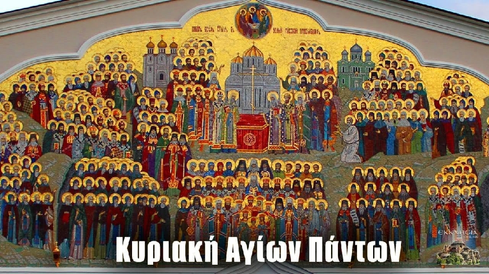 Η τελευταία Κυριακή της ιερής περιόδου του Πεντηκοσταρίου είναι αφιερωμένη στου Αγίους Πάντες. Η Αγία μας Εκκλησία, κλείνοντας την εορτολογική περίοδο των κινητών εορτών του έτους, προβάλλει και τιμά όλους τους αγίους της, γνωστούς και αγνώστους, όλων των εποχών, θέλοντας να μας υπενθυμίσει ότι ο στόχος μας θα πρέπει να είναι η αγιότητα, διότι θα πρέπει η επίγεια ζωή μας να είναι μια πορεία αγώνα απόταξης του παλαιού ανθρώπου, κάθαρσης από τα πάθη μας και απόκτησης αρετών. Η μακρά πνευματική μας πορεία καθ’ όλη τη διάρκεια των κινητών εορτών, από την Κυριακή του Τελώνου και του Φαρισαίου, ως το Άγιο Πάσχα και ως την Κυριακή των Αγίων Πάντων είναι μια νοητή διαδρομή της επίγειας ζωής μας προς την τελείωσή μας. Η ιερή περίοδος του Τριωδίου σημαίνει την συνειδητοποίηση της αμαρτωλότητάς μας και την πορεία μας προς το θείο πρόσωπο του Λυτρωτή μας Χριστού. Η ιερή περίοδος του Πεντηκοσταρίου, της αναστάσιμης περιόδου, σηματοδοτεί την συνάντησή μας με τον αναστάντα Χριστό και την μετοχή στις σωτήριες δωρεές Του. Ο Σωτήρας μας Χριστός μας καλεί να γίνουμε άγιοι, να ξεχωρίσουμε τον εαυτό μας από τον πτωτικό κόσμο, της φθοράς και του θανάτου. Να ενωθούμε με το Χριστό οντολογικά, να γίνουμε σύσσωμοι με Αυτόν, κύτταρο το μυστικού Του Σώματος, για να λάβουμε την ύψιστη δωρεά της σωτηρίας. Η σωτηρία μας συνίσταται στην οργανική ένωσή μας με Αυτόν. Ο Χριστός σώζει το Σώμα Του, όλα τα κύτταρά Του και μαζί θα σώσει και εμάς, αν γίνουμε κύτταρο σ’ αυτό.