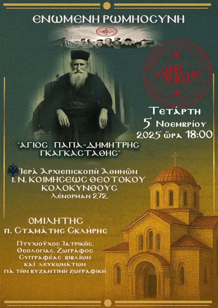 Ὁμιλία με θέμα: «Ὁ Ἅγιος Παπα-Δημήτρης Γκαγκαστάθης »