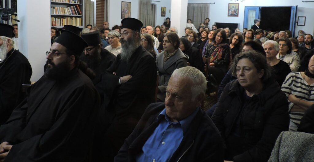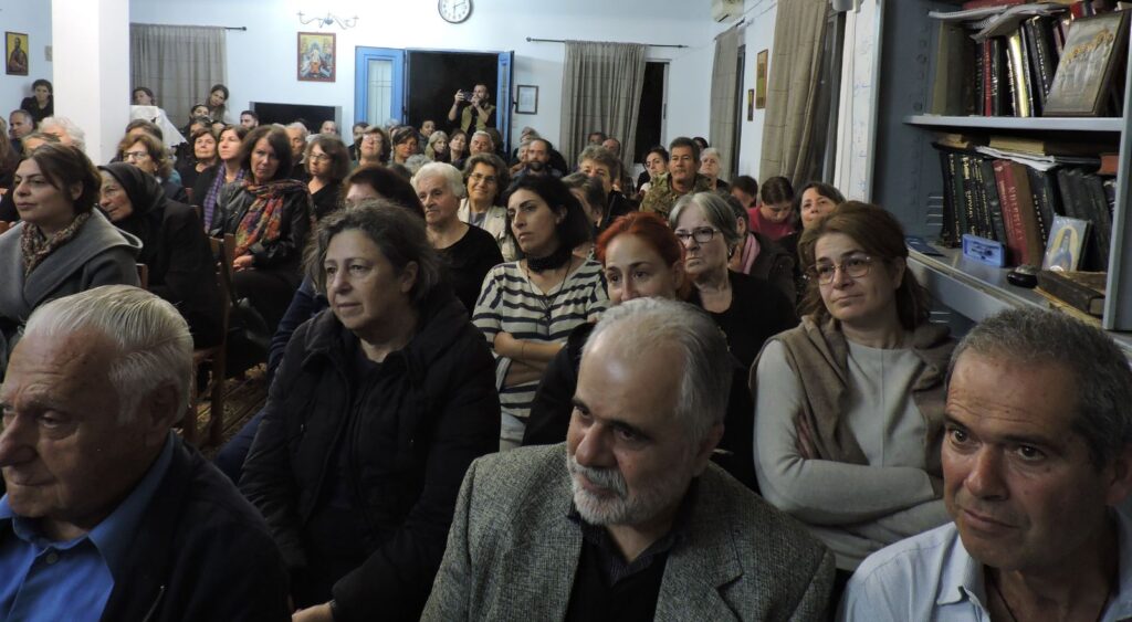 Αρκετοί ιερείς παρακολούθησαν την ομιλία, όπως και εκπρόσωπος της δημοτικής αρχής του τόπου, αλλά και ένα πλήθος κόσμου, που κατέκλυσε κυριολεκτικά την αίθουσα, αλλά και τον προαύλιο χώρο.