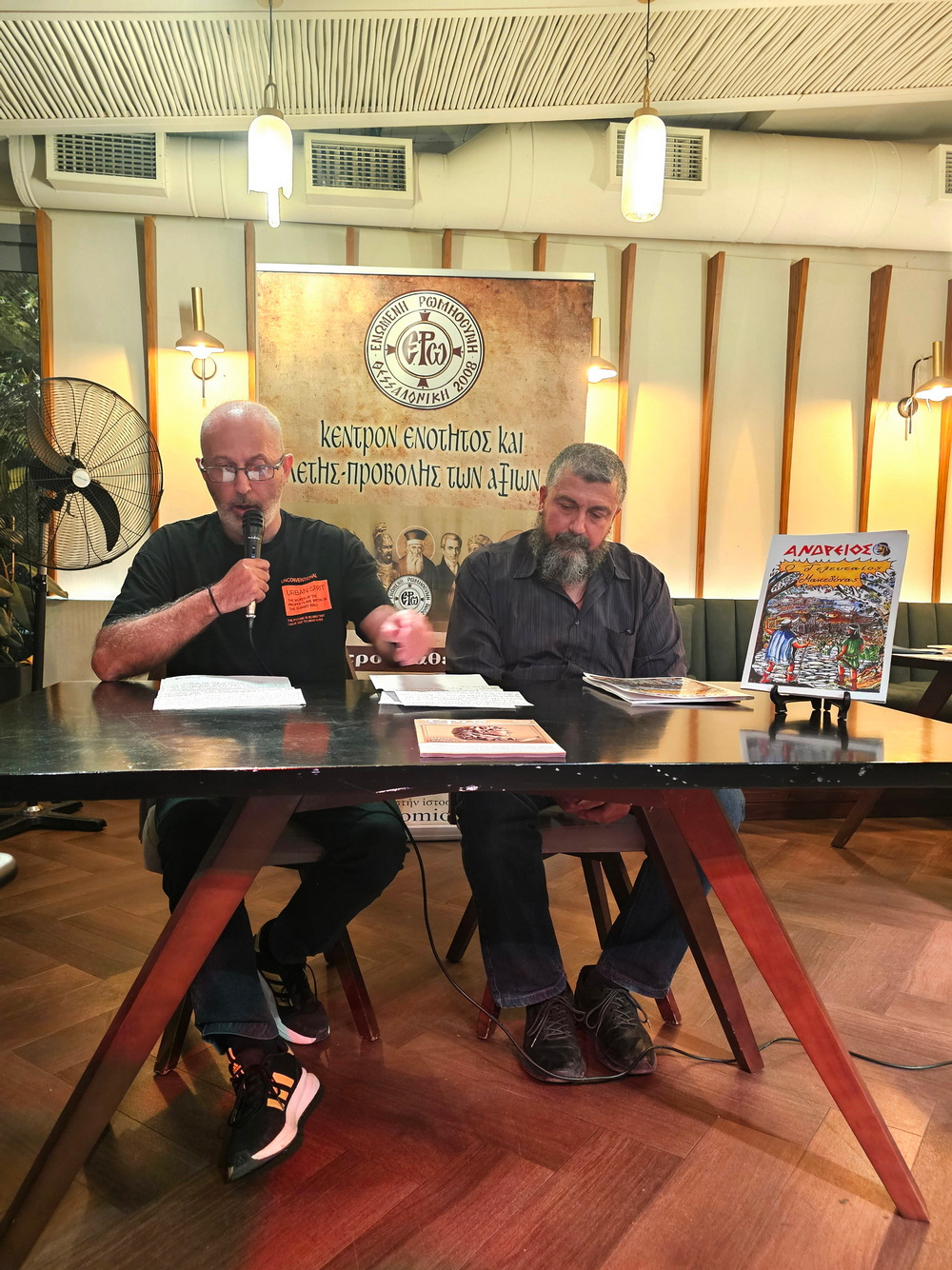 Κατενθουσιασμένοι οἱ παρευρισκόμενοι ἐξάντλησαν ὅλα τὰ κόμικ ποὺ εἴχαμε στὴν διάθεσή μας!!! Ἐπίσης δόθηκαν σὲ ἔντυπη μορφὴ τὸ προλογικὸ σημείωμα τοῦ 1ου τεύχους τοῦ νεανικοῦ περιοδικοῦ μας “Ρωμνιός” (ὁ λιτὸς τίτλος αὐτὸς σημαίνει νέος Ρωμηός, δηλαδὴ Ἑλληνόπαις) τὸ περιοδικὸ Ε.ρω., τὸ κείμενο περὶ τῆς εὐλογημένης ἑνότητας τοῦ Λαοῦ μας, καθώς καὶ τὴν σημαντικὴ ἀνακοίνωση ποὺ ἀφορᾶ τὴν δημιουργία ἑνὸς παραδοσιακοῦ οἰκισμοῦ ἀπὸ τὸ Σωματεῖο μᾶς πλησίον τῶν Μετεώρων.