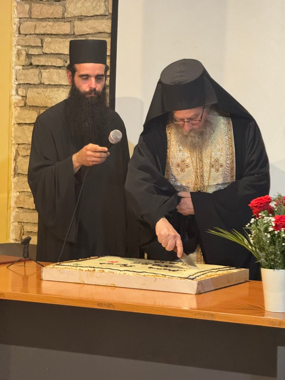 Την βασιλόπιτα ευλόγησε ο Καθηγούμενος της Ι.Μονής Γηρομερίου Πατήρ Μεθόδιος, καθώς και ο Αρχιμανδρίτης π. Κύριλλος, μέλος της Αδελφότητας Ι.Μονής Ραγίου. Κατά την κοπή ο π. Μεθόδιος εξήρε την προσπάθεια της Ενωμένης Ρωμηοσύνης και μας ευχήθηκε να είμαστε αδελφομένοι.