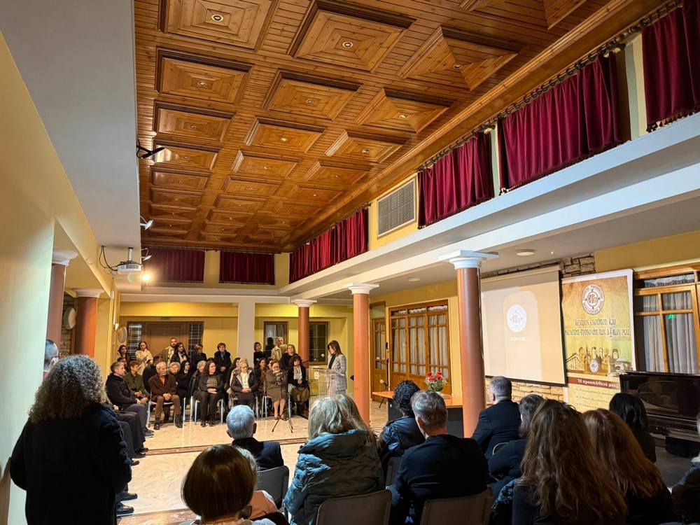 Η εκδήλωση ξεκίνησε με προβολή βίντεο, παρουσιάζοντας το έργο και τις δράσεις του Σωματείου, ενώ προλόγισε η υπεύθυνη της πόλεως κ. Μαρία Ντίνη, κάνοντας σύντομη αναφορά στο νόημα και την αποστολή του Σωματείου της Ενωμένης Ρωμηοσύνης.