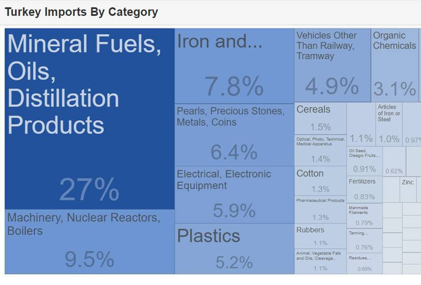 Σήμερα, η τουρκική οικονομία παρά τα προβλήματά της, πραγματοποιεί εξαγωγές σε πολλούς τομείς, βασιζόμενη σε μια δυναμική μεταποιητική βιομηχανία. Όπως είναι φυσικό, η μεγάλη οικονομική ανάπτυξη, σε συνδυασμό με τις απαιτήσεις ενός πληθυσμού που σήμερα φτάνει τα 85 εκατομμύρια, δημιουργούν στην Τουρκία μεγάλες ενεργειακές ανάγκες. Δεν θα ήταν λοιπόν υπερβολή να πούμε ότι η Τουρκία στην κυριολεξία διψά για ενέργεια. Οι μεγάλες εισαγωγές σε ενέργεια (27% του συνόλου) είναι και η αιτία που το τουρκικό ισοζύγιο τρεχουσών συναλλαγών παραμένει ελλειμματικό. Χωρίς αυτές, το ισοζύγιο θα ήταν θετικό, και θα έπαυε η συνεχής διολίσθηση της τουρκικής λίρας και ο συνεπαγόμενος υψηλός πληθωρισμός.