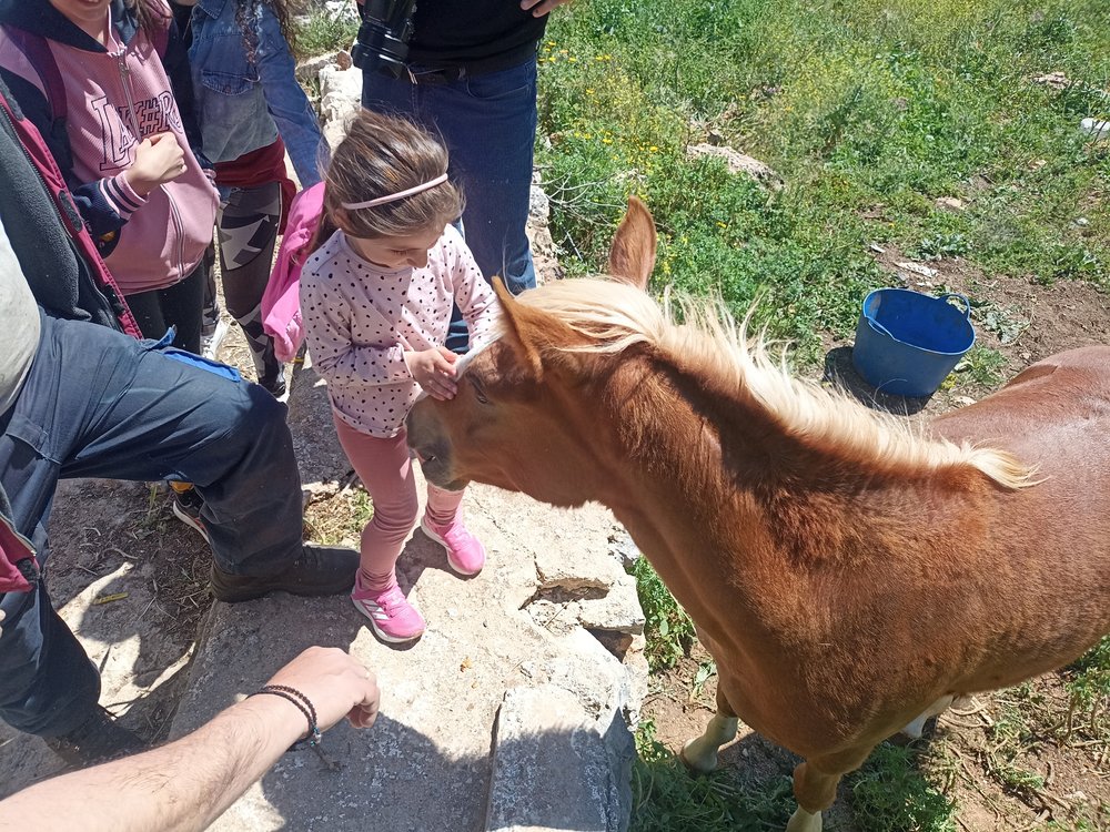 Συντροφιά μας είχαμε την Κέλλυ, ένα νεαρό θηλυκό άλογο, που έβοσκε στο λιβάδι και αναζητούσε την παρέα μας.