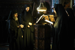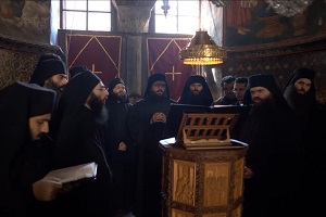 Απόδοσις της εορτής του Πάσχα: Θ΄ Ωδή του Κανόνος μετά των μεγαλυναρίων και της Καταβασίας της Αναστάσεως, Ήχος Α΄. Ψάλλουν Βατοπαιδινοί Πατέρες – Δοξαστικόν Αναστάσεως, μέλος Χρυσάφου τού νέου, Ήχος πλ. Α΄, Ψάλλουν Γρηγοριάτες Πατέρες.