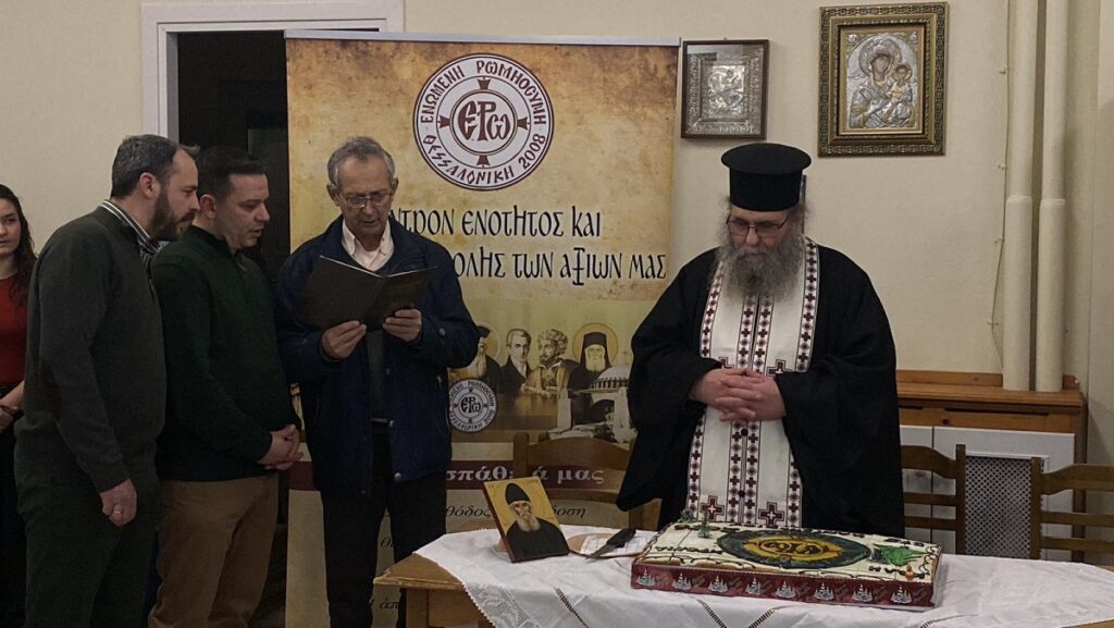 Στον λόγο του αναφέρθηκε στο σημαντικό έργο που επιτελεί η «Ενωμένη Ρωμηοσύνη», επισημαίνοντας ότι η προσφορά και ο αγώνας μας δεν αποσκοπούν στα ανθρώπινα «μπράβο», αλλά στην επιβράβευση από τον.Θεό. Τόνισε ότι όσα πράττουμε τα πράττουμε προς Δόξαν Κυρίου, ενώ στη συνέχεια μίλησε για τη ζωή και το παράδειγμα της Οσίας Ξένης, της οποίας η μνήμη εορταζόταν την προηγούμενη ημέρα, αναδεικνύοντας την ταπείνωση, την υπομονή και την ολοκληρωτική αφιέρωσή της στον Θεό.