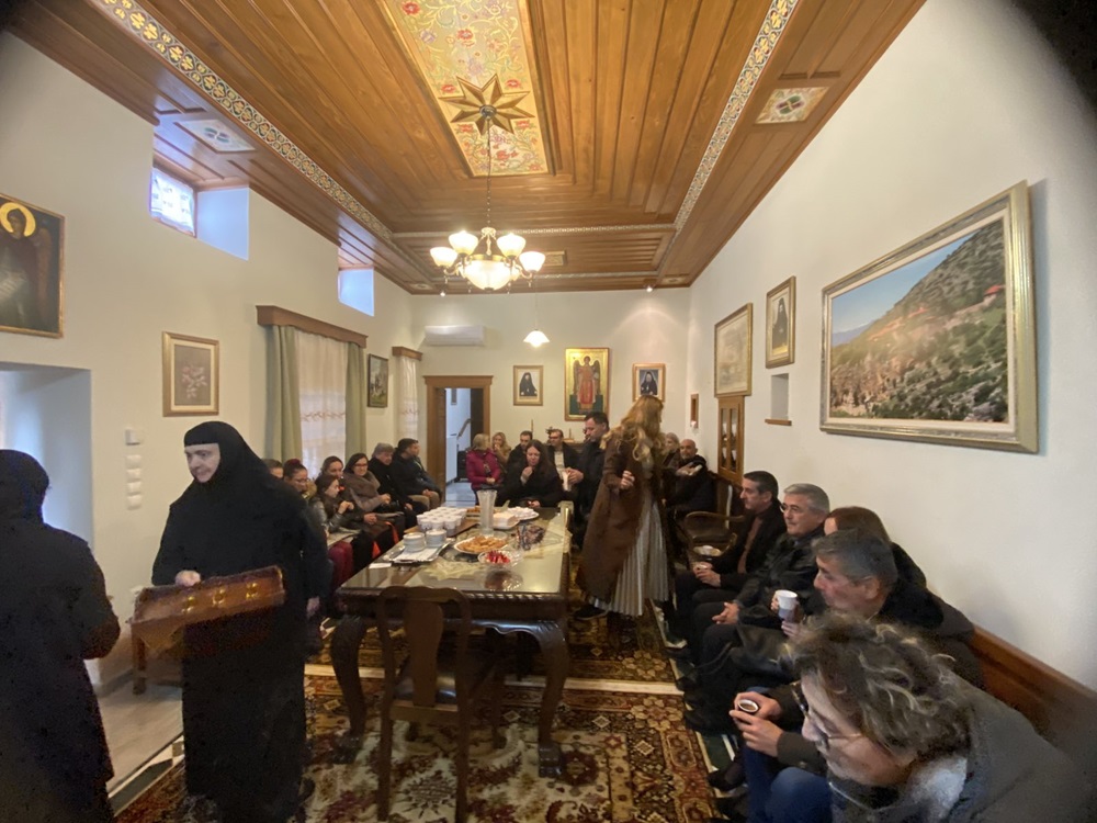 Προηγήθηκε ἡ συμμετοχή ὅλων στήν θεία Λειτουργία στό κατάμεστο ἀπό προσκυνητές καθολικό τῆς Ἱερᾶς Μονῆς, στή συνέχεια προσφέρθηκε πλούσιο κέρασμα στό ἀρχονταρίκι πού μέ χαρά πρόσφεραν οἱ ἀδελφές τῆς Μονῆς καί ἀκολούθησε ὁμιλία ἀπό τόν πανοσιολογιότατο ἀρχιμανδρίτη π. Βησσαρίωνα Δουσικιώτη, ἡγούμενο τῆς Ἱερᾶς Μονῆς Δουσίκου Τρικάλων, μέ θέμα τόν βίο καί τά θαύματα τοῦ ἁγίου Βησσαρίωνα, Ἀρχιεπισκόπου Λαρίσης τοῦ θαυματουργοῦ.