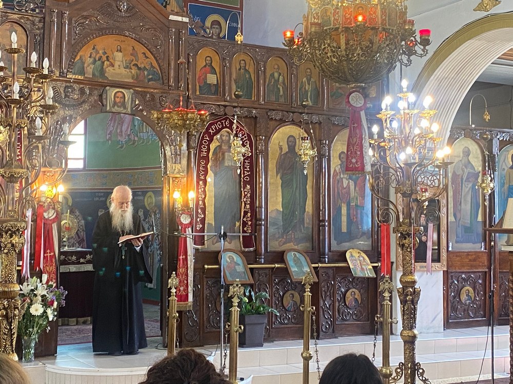 Εὐχαριστοῦμε ἀκόμη τὴν Ἡγουμένη τῆς Ἱερᾶς Μονῆς ποὺ ἐπέτρεψε τὴν παραμονὴ στοὺς χώρους τῆς Μονῆς καὶ τοὺς πατέρες Συμεὼν στὸ Μοναστήρι καὶ τὸν π. Ἄγγελο στὰ Λιμενάρια, καθὼς ὁ λόγος τους ἀντηχεῖ ἀκόμη στὴν καρδιά μας καὶ θὰ μᾶς συντροφεύει σὰν δροσερὴ αὔρα τὶς δύο τελευταῖες ἑβδομάδες ποὺ διανύουμε ἕως τὴν Ἀνάσταση τοῦ Κυρίου.