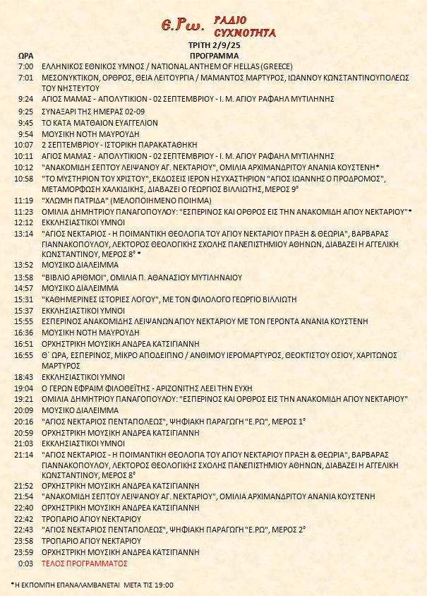 2 Σεπτεμβρίου 2025 σε ΑΡΧΕΙΑ ΗΧΟΥ, ΕΡΩ - ΡαδιοΣυχνότητα, ΟΠΤΙΚΟΑΚΟΥΣΤΙΚΟ ΥΛΙΚΟ Σήμερα 02/9/25, μπορείτε να ακούσετε : Γιὰ τὴ σύνδεση μπορεῖτε νὰ πατήστε στην παρακάτω εικόνα : ή χρησιμοποιήσετε τὸ παρακάτω link : Πρόγραμμα Λειτουργίας Ραδιοφώνου ΕΡΩ: “Ε.Ρω. – ΡαδιοΣυχνότητα”https://welove.radio/radio/ero-radiosixnotita/ Καλή σας ακρόαση Ετικέτες - Σχετικά Θέματα ΕΡΩ ΡΑΔΙΟΦΩΝΟ ΕΡΩ-ΡΑΔΙΟΣΥΧΝΟΤΗΤΑ Προηγούμενο