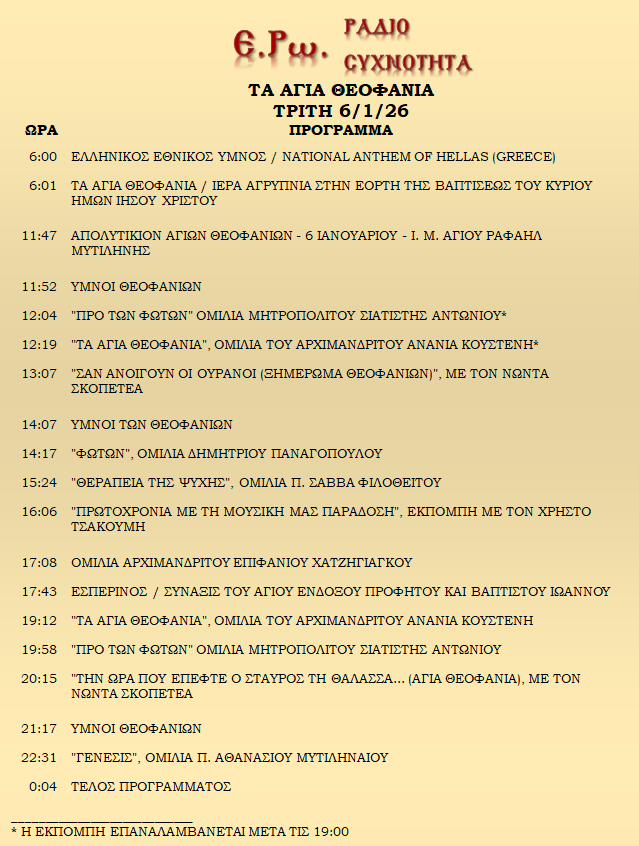6 Ιανουαρίου 2026 σε ΑΡΧΕΙΑ ΗΧΟΥ, ΕΡΩ - ΡαδιοΣυχνότητα, ΟΠΤΙΚΟΑΚΟΥΣΤΙΚΟ ΥΛΙΚΟ Σήμερα 06/01/26, μπορείτε να ακούσετε: Γιὰ τὴ σύνδεση μπορεῖτε νὰ πατήστε στην παρακάτω εικόνα : ή χρησιμοποιήσετε τὸ παρακάτω link : Πρόγραμμα Λειτουργίας Ραδιοφώνου ΕΡΩ: “Ε.Ρω. – ΡαδιοΣυχνότητα”https://welove.radio/radio/ero-radiosixnotita/ Καλή σας ακρόαση Ετικέτες - Σχετικά Θέματα ΕΡΩ ΡΑΔΙΟΦΩΝΟ ΕΡΩ-ΡΑΔΙΟΣΥΧΝΟΤΗΤΑ Προηγούμενο