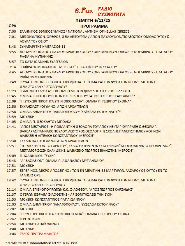 6 Νοεμβρίου 2025 σε ΑΡΧΕΙΑ ΗΧΟΥ, ΕΡΩ - ΡαδιοΣυχνότητα, ΟΠΤΙΚΟΑΚΟΥΣΤΙΚΟ ΥΛΙΚΟ Σήμερα 06/11/25, μπορείτε να ακούσετε: Γιὰ τὴ σύνδεση μπορεῖτε νὰ πατήστε στην παρακάτω εικόνα : ή χρησιμοποιήσετε τὸ παρακάτω link : Πρόγραμμα Λειτουργίας Ραδιοφώνου ΕΡΩ: “Ε.Ρω. – ΡαδιοΣυχνότητα”https://welove.radio/radio/ero-radiosixnotita/ Καλή σας ακρόαση Ετικέτες - Σχετικά Θέματα ΕΡΩ ΡΑΔΙΟΦΩΝΟ ΕΡΩ-ΡΑΔΙΟΣΥΧΝΟΤΗΤΑ Προηγούμενο