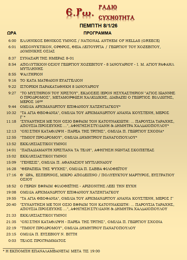 8 Ιανουαρίου 2026 σε ΑΡΧΕΙΑ ΗΧΟΥ, ΕΡΩ - ΡαδιοΣυχνότητα, ΟΠΤΙΚΟΑΚΟΥΣΤΙΚΟ ΥΛΙΚΟ Σήμερα 08/01/26, μπορείτε να ακούσετε: Γιὰ τὴ σύνδεση μπορεῖτε νὰ πατήστε στην παρακάτω εικόνα : ή χρησιμοποιήσετε τὸ παρακάτω link : Πρόγραμμα Λειτουργίας Ραδιοφώνου ΕΡΩ: “Ε.Ρω. – ΡαδιοΣυχνότητα”https://welove.radio/radio/ero-radiosixnotita/ Καλή σας ακρόαση Ετικέτες - Σχετικά Θέματα ΕΡΩ ΡΑΔΙΟΦΩΝΟ ΕΡΩ-ΡΑΔΙΟΣΥΧΝΟΤΗΤΑ Προηγούμενο
