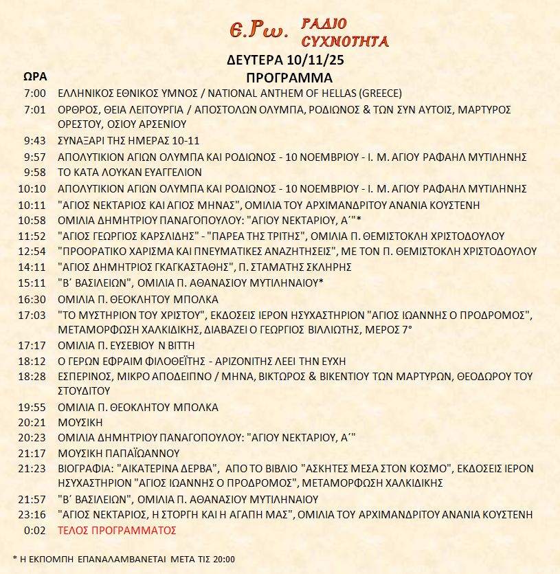 10 Νοεμβρίου 2025 σε ΑΡΧΕΙΑ ΗΧΟΥ, ΕΡΩ - ΡαδιοΣυχνότητα, ΟΠΤΙΚΟΑΚΟΥΣΤΙΚΟ ΥΛΙΚΟ Σήμερα 10/11/25, μπορείτε να ακούσετε: Γιὰ τὴ σύνδεση μπορεῖτε νὰ πατήστε στην παρακάτω εικόνα : ή χρησιμοποιήσετε τὸ παρακάτω link : Πρόγραμμα Λειτουργίας Ραδιοφώνου ΕΡΩ: “Ε.Ρω. – ΡαδιοΣυχνότητα”https://welove.radio/radio/ero-radiosixnotita/ Καλή σας ακρόαση Ετικέτες - Σχετικά Θέματα ΕΡΩ ΡΑΔΙΟΦΩΝΟ ΕΡΩ-ΡΑΔΙΟΣΥΧΝΟΤΗΤΑ Προηγούμενο