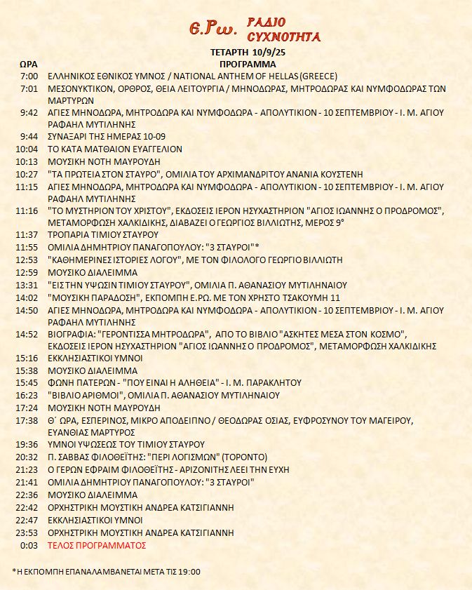 10 Σεπτεμβρίου 2025 σε ΑΡΧΕΙΑ ΗΧΟΥ, ΕΡΩ - ΡαδιοΣυχνότητα, ΟΠΤΙΚΟΑΚΟΥΣΤΙΚΟ ΥΛΙΚΟ Σήμερα 10/9/25, μπορείτε να ακούσετε : Γιὰ τὴ σύνδεση μπορεῖτε νὰ πατήστε στην παρακάτω εικόνα : ή χρησιμοποιήσετε τὸ παρακάτω link : Πρόγραμμα Λειτουργίας Ραδιοφώνου ΕΡΩ: “Ε.Ρω. – ΡαδιοΣυχνότητα”https://welove.radio/radio/ero-radiosixnotita/ Καλή σας ακρόαση Ετικέτες - Σχετικά Θέματα ΕΡΩ ΡΑΔΙΟΦΩΝΟ ΕΡΩ-ΡΑΔΙΟΣΥΧΝΟΤΗΤΑ Προηγούμενο