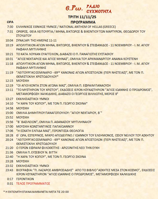 11 Νοεμβρίου 2025 σε ΑΡΧΕΙΑ ΗΧΟΥ, ΕΡΩ - ΡαδιοΣυχνότητα, ΟΠΤΙΚΟΑΚΟΥΣΤΙΚΟ ΥΛΙΚΟ Σήμερα 11/11/25, μπορείτε να ακούσετε: Γιὰ τὴ σύνδεση μπορεῖτε νὰ πατήστε στην παρακάτω εικόνα : ή χρησιμοποιήσετε τὸ παρακάτω link : Πρόγραμμα Λειτουργίας Ραδιοφώνου ΕΡΩ: “Ε.Ρω. – ΡαδιοΣυχνότητα”https://welove.radio/radio/ero-radiosixnotita/ Καλή σας ακρόαση Ετικέτες - Σχετικά Θέματα ΕΡΩ ΡΑΔΙΟΦΩΝΟ ΕΡΩ-ΡΑΔΙΟΣΥΧΝΟΤΗΤΑ Επόμενο Προηγούμενο