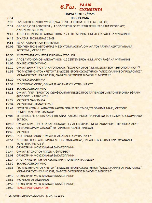 12 Σεπτεμβρίου 2025 σε ΑΡΧΕΙΑ ΗΧΟΥ, ΕΡΩ - ΡαδιοΣυχνότητα, ΟΠΤΙΚΟΑΚΟΥΣΤΙΚΟ ΥΛΙΚΟ Σήμερα 12/9/25, μπορείτε να ακούσετε : Γιὰ τὴ σύνδεση μπορεῖτε νὰ πατήστε στην παρακάτω εικόνα : ή χρησιμοποιήσετε τὸ παρακάτω link : Πρόγραμμα Λειτουργίας Ραδιοφώνου ΕΡΩ: “Ε.Ρω. – ΡαδιοΣυχνότητα”https://welove.radio/radio/ero-radiosixnotita/ Καλή σας ακρόαση Ετικέτες - Σχετικά Θέματα ΕΡΩ ΡΑΔΙΟΦΩΝΟ ΕΡΩ-ΡΑΔΙΟΣΥΧΝΟΤΗΤΑ Προηγούμενο