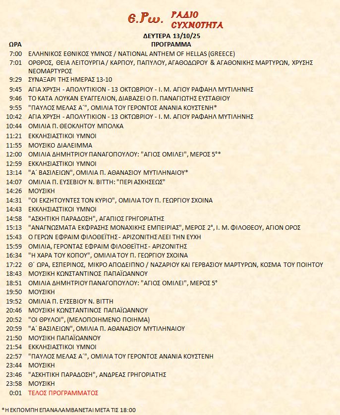 13 Οκτωβρίου 2025 σε ΑΡΧΕΙΑ ΗΧΟΥ, ΕΡΩ - ΡαδιοΣυχνότητα, ΟΠΤΙΚΟΑΚΟΥΣΤΙΚΟ ΥΛΙΚΟ Σήμερα 13/10/25, μπορείτε να ακούσετε: Γιὰ τὴ σύνδεση μπορεῖτε νὰ πατήστε στην παρακάτω εικόνα : ή χρησιμοποιήσετε τὸ παρακάτω link : Πρόγραμμα Λειτουργίας Ραδιοφώνου ΕΡΩ: “Ε.Ρω. – ΡαδιοΣυχνότητα”https://welove.radio/radio/ero-radiosixnotita/ Καλή σας ακρόαση Ετικέτες - Σχετικά Θέματα ΕΡΩ ΡΑΔΙΟΦΩΝΟ ΕΡΩ-ΡΑΔΙΟΣΥΧΝΟΤΗΤΑ Προηγούμενο