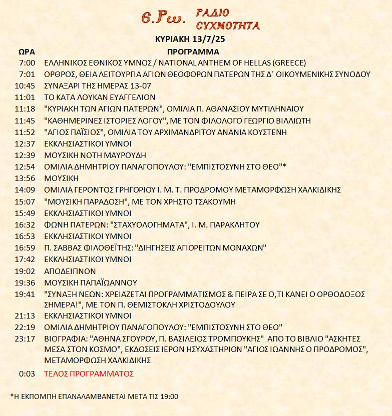 13 Ιουλίου 2025 σε ΑΡΧΕΙΑ ΗΧΟΥ, ΕΡΩ - ΡαδιοΣυχνότητα, ΟΠΤΙΚΟΑΚΟΥΣΤΙΚΟ ΥΛΙΚΟ Σήμερα 13/7/25, μπορείτε να ακούσετε : Γιὰ τὴ σύνδεση μπορεῖτε νὰ πατήστε στην παρακάτω εικόνα : ή χρησιμοποιήσετε τὸ παρακάτω link : Πρόγραμμα Λειτουργίας Ραδιοφώνου ΕΡΩ: “Ε.Ρω. – ΡαδιοΣυχνότητα”https://welove.radio/radio/ero-radiosixnotita/ Καλή σας ακρόαση Ετικέτες - Σχετικά Θέματα ΕΡΩ ΡΑΔΙΟΦΩΝΟ ΕΡΩ-ΡΑΔΙΟΣΥΧΝΟΤΗΤΑ Προηγούμενο