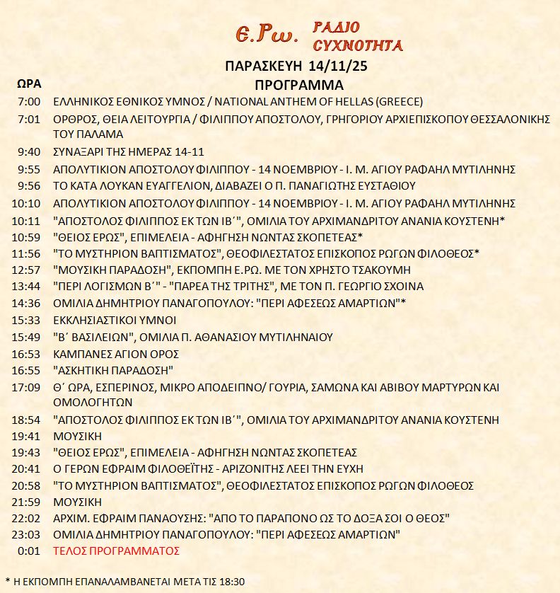 14 Νοεμβρίου 2025 σε ΑΡΧΕΙΑ ΗΧΟΥ, ΕΡΩ - ΡαδιοΣυχνότητα, ΟΠΤΙΚΟΑΚΟΥΣΤΙΚΟ ΥΛΙΚΟ Σήμερα 14/11/25, μπορείτε να ακούσετε: Γιὰ τὴ σύνδεση μπορεῖτε νὰ πατήστε στην παρακάτω εικόνα : ή χρησιμοποιήσετε τὸ παρακάτω link : Πρόγραμμα Λειτουργίας Ραδιοφώνου ΕΡΩ: “Ε.Ρω. – ΡαδιοΣυχνότητα”https://welove.radio/radio/ero-radiosixnotita/ Καλή σας ακρόαση Ετικέτες - Σχετικά Θέματα ΕΡΩ ΡΑΔΙΟΦΩΝΟ ΕΡΩ-ΡΑΔΙΟΣΥΧΝΟΤΗΤΑ Προηγούμενο