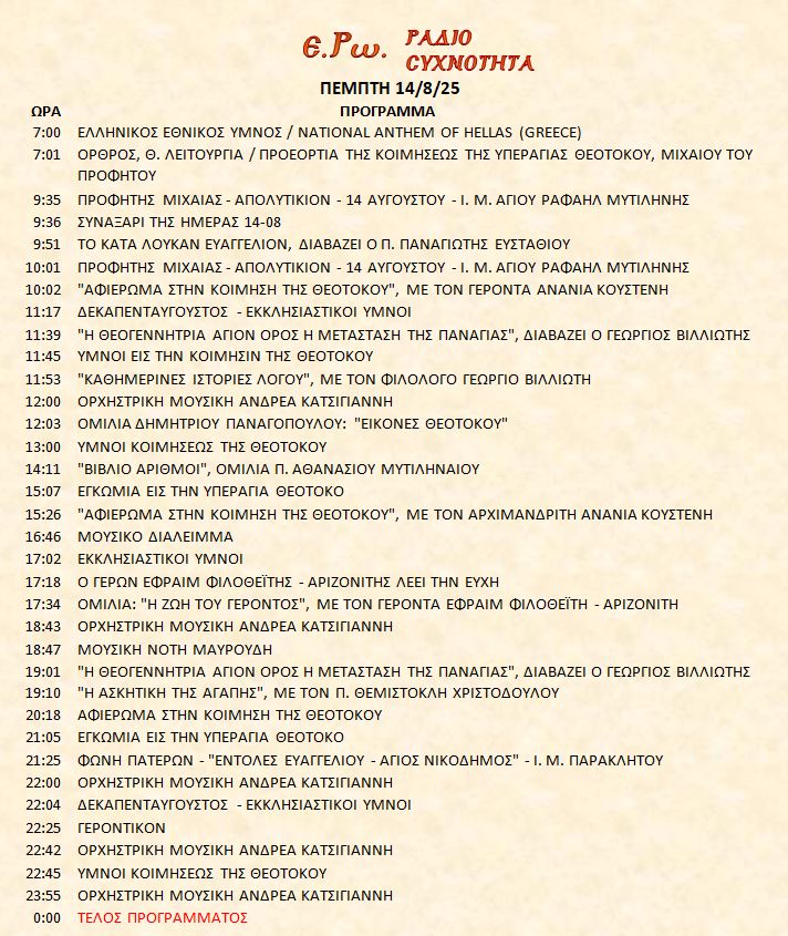 14 Αυγούστου 2025 σε ΕΡΩ - ΡαδιοΣυχνότητα, ΟΠΤΙΚΟΑΚΟΥΣΤΙΚΟ ΥΛΙΚΟ, Ραδιοχρήστοτητα Σήμερα 14/8/25, μπορείτε να ακούσετε : Γιὰ τὴ σύνδεση μπορεῖτε νὰ πατήστε στην παρακάτω εικόνα : ή χρησιμοποιήσετε τὸ παρακάτω link : Πρόγραμμα Λειτουργίας Ραδιοφώνου ΕΡΩ: “Ε.Ρω. – ΡαδιοΣυχνότητα”https://welove.radio/radio/ero-radiosixnotita/ Καλή σας ακρόαση Ετικέτες - Σχετικά Θέματα ΕΡΩ ΡΑΔΙΟΦΩΝΟ ΕΡΩ-ΡΑΔΙΟΣΥΧΝΟΤΗΤΑ Προηγούμενο