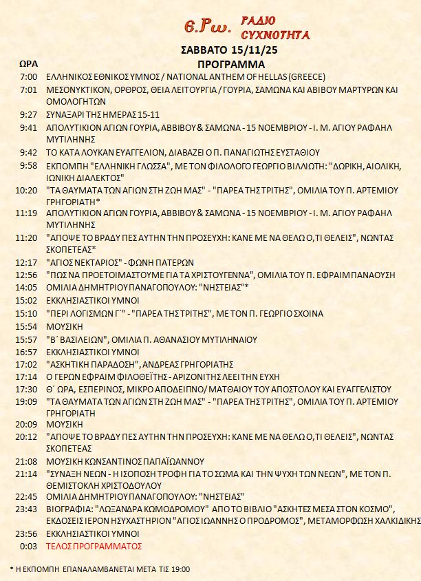 15 Νοεμβρίου 2025 σε ΑΡΧΕΙΑ ΗΧΟΥ, ΕΡΩ - ΡαδιοΣυχνότητα, ΟΠΤΙΚΟΑΚΟΥΣΤΙΚΟ ΥΛΙΚΟ Σήμερα 15/11/25, μπορείτε να ακούσετε: Γιὰ τὴ σύνδεση μπορεῖτε νὰ πατήστε στην παρακάτω εικόνα : ή χρησιμοποιήσετε τὸ παρακάτω link : Πρόγραμμα Λειτουργίας Ραδιοφώνου ΕΡΩ: “Ε.Ρω. – ΡαδιοΣυχνότητα”https://welove.radio/radio/ero-radiosixnotita/ Καλή σας ακρόαση Ετικέτες - Σχετικά Θέματα ΕΡΩ ΡΑΔΙΟΦΩΝΟ ΕΡΩ-ΡΑΔΙΟΣΥΧΝΟΤΗΤΑ Προηγούμενο