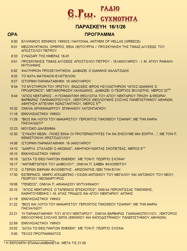 16 Ιανουαρίου 2026 σε ΑΡΧΕΙΑ ΗΧΟΥ, ΕΡΩ - ΡαδιοΣυχνότητα, ΟΠΤΙΚΟΑΚΟΥΣΤΙΚΟ ΥΛΙΚΟ Σήμερα 16/01/26, μπορείτε να ακούσετε: Γιὰ τὴ σύνδεση μπορεῖτε νὰ πατήστε στην παρακάτω εικόνα : ή χρησιμοποιήσετε τὸ παρακάτω link : Πρόγραμμα Λειτουργίας Ραδιοφώνου ΕΡΩ: “Ε.Ρω. – ΡαδιοΣυχνότητα”https://welove.radio/radio/ero-radiosixnotita/ Καλή σας ακρόαση Ετικέτες - Σχετικά Θέματα ΕΡΩ ΡΑΔΙΟΦΩΝΟ ΕΡΩ-ΡΑΔΙΟΣΥΧΝΟΤΗΤΑ Προηγούμενο