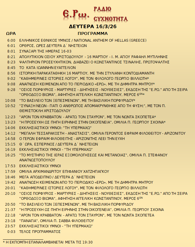 16 Μαρτίου 2026 σε ΑΡΧΕΙΑ ΗΧΟΥ, ΕΡΩ - ΡαδιοΣυχνότητα, ΟΠΤΙΚΟΑΚΟΥΣΤΙΚΟ ΥΛΙΚΟ Σήμερα 16/03/26, μπορείτε να ακούσετε: Γιὰ τὴ σύνδεση μπορεῖτε νὰ πατήστε στην παρακάτω εικόνα : ή χρησιμοποιήσετε τὸ παρακάτω link : Πρόγραμμα Λειτουργίας Ραδιοφώνου ΕΡΩ: “Ε.Ρω. – ΡαδιοΣυχνότητα”https://welove.radio/radio/ero-radiosixnotita/ Καλή σας ακρόαση Ετικέτες - Σχετικά Θέματα ΕΡΩ ΡΑΔΙΟΦΩΝΟ ΕΡΩ-ΡΑΔΙΟΣΥΧΝΟΤΗΤΑ Προηγούμενο