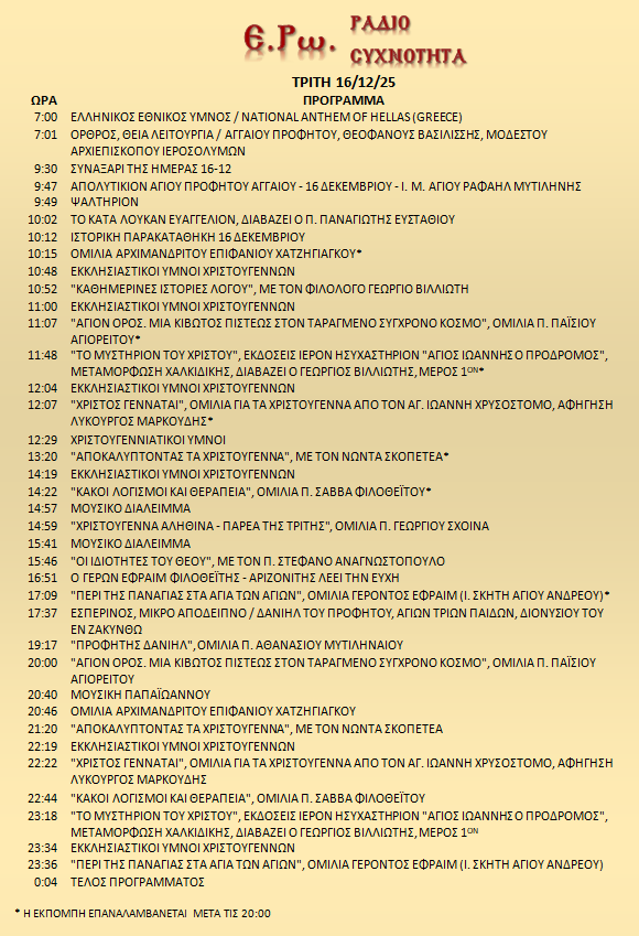 16 Δεκεμβρίου 2025 σε ΑΡΧΕΙΑ ΗΧΟΥ, ΕΡΩ - ΡαδιοΣυχνότητα, ΟΠΤΙΚΟΑΚΟΥΣΤΙΚΟ ΥΛΙΚΟ Σήμερα 16/12/25, μπορείτε να ακούσετε: Γιὰ τὴ σύνδεση μπορεῖτε νὰ πατήστε στην παρακάτω εικόνα : ή χρησιμοποιήσετε τὸ παρακάτω link : Πρόγραμμα Λειτουργίας Ραδιοφώνου ΕΡΩ: “Ε.Ρω. – ΡαδιοΣυχνότητα”https://welove.radio/radio/ero-radiosixnotita/ Καλή σας ακρόαση Ετικέτες - Σχετικά Θέματα ΕΡΩ ΡΑΔΙΟΦΩΝΟ ΕΡΩ-ΡΑΔΙΟΣΥΧΝΟΤΗΤΑ Προηγούμενο