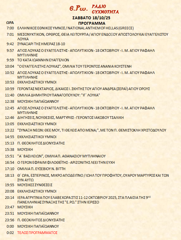 18 Οκτωβρίου 2025 σε ΑΡΧΕΙΑ ΗΧΟΥ, ΕΡΩ - ΡαδιοΣυχνότητα, ΟΠΤΙΚΟΑΚΟΥΣΤΙΚΟ ΥΛΙΚΟ Σήμερα 18/10/25, μπορείτε να ακούσετε: Γιὰ τὴ σύνδεση μπορεῖτε νὰ πατήστε στην παρακάτω εικόνα : ή χρησιμοποιήσετε τὸ παρακάτω link : Πρόγραμμα Λειτουργίας Ραδιοφώνου ΕΡΩ: “Ε.Ρω. – ΡαδιοΣυχνότητα”https://welove.radio/radio/ero-radiosixnotita/ Καλή σας ακρόαση Ετικέτες - Σχετικά Θέματα ΕΡΩ ΡΑΔΙΟΦΩΝΟ ΕΡΩ-ΡΑΔΙΟΣΥΧΝΟΤΗΤΑ Προηγούμενο