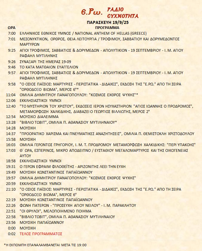 19 Σεπτεμβρίου 2025 σε ΑΡΧΕΙΑ ΗΧΟΥ, ΕΡΩ - ΡαδιοΣυχνότητα, ΟΠΤΙΚΟΑΚΟΥΣΤΙΚΟ ΥΛΙΚΟ Σήμερα 19/9/25, μπορείτε να ακούσετε : Γιὰ τὴ σύνδεση μπορεῖτε νὰ πατήστε στην παρακάτω εικόνα : ή χρησιμοποιήσετε τὸ παρακάτω link : Πρόγραμμα Λειτουργίας Ραδιοφώνου ΕΡΩ: “Ε.Ρω. – ΡαδιοΣυχνότητα”https://welove.radio/radio/ero-radiosixnotita/ Καλή σας ακρόαση Ετικέτες - Σχετικά Θέματα ΕΡΩ ΡΑΔΙΟΦΩΝΟ ΕΡΩ-ΡΑΔΙΟΣΥΧΝΟΤΗΤΑ Προηγούμενο