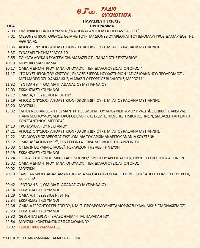 3 Οκτωβρίου 2025 σε ΑΡΧΕΙΑ ΗΧΟΥ, ΕΡΩ - ΡαδιοΣυχνότητα, ΟΠΤΙΚΟΑΚΟΥΣΤΙΚΟ ΥΛΙΚΟ Σήμερα 3/10/25, μπορείτε να ακούσετε : Γιὰ τὴ σύνδεση μπορεῖτε νὰ πατήστε στην παρακάτω εικόνα : ή χρησιμοποιήσετε τὸ παρακάτω link : Πρόγραμμα Λειτουργίας Ραδιοφώνου ΕΡΩ: “Ε.Ρω. – ΡαδιοΣυχνότητα”https://welove.radio/radio/ero-radiosixnotita/ Καλή σας ακρόαση Ετικέτες - Σχετικά Θέματα ΕΡΩ ΡΑΔΙΟΦΩΝΟ ΕΡΩ-ΡΑΔΙΟΣΥΧΝΟΤΗΤΑ Επόμενο Προηγούμενο