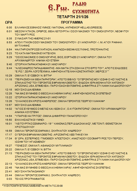 21 Ιανουαρίου 2026 σε ΑΡΧΕΙΑ ΗΧΟΥ, ΕΡΩ - ΡαδιοΣυχνότητα, ΟΠΤΙΚΟΑΚΟΥΣΤΙΚΟ ΥΛΙΚΟ Σήμερα 21/01/26, μπορείτε να ακούσετε: Γιὰ τὴ σύνδεση μπορεῖτε νὰ πατήστε στην παρακάτω εικόνα : ή χρησιμοποιήσετε τὸ παρακάτω link : Πρόγραμμα Λειτουργίας Ραδιοφώνου ΕΡΩ: “Ε.Ρω. – ΡαδιοΣυχνότητα”https://welove.radio/radio/ero-radiosixnotita/ Καλή σας ακρόαση Ετικέτες - Σχετικά Θέματα ΕΡΩ ΡΑΔΙΟΦΩΝΟ ΕΡΩ-ΡΑΔΙΟΣΥΧΝΟΤΗΤΑ Προηγούμενο