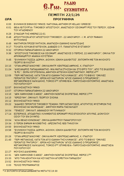 22 Ιανουαρίου 2026 σε ΑΡΧΕΙΑ ΗΧΟΥ, ΕΡΩ - ΡαδιοΣυχνότητα, ΟΠΤΙΚΟΑΚΟΥΣΤΙΚΟ ΥΛΙΚΟ Σήμερα 22/01/26, μπορείτε να ακούσετε: Γιὰ τὴ σύνδεση μπορεῖτε νὰ πατήστε στην παρακάτω εικόνα : ή χρησιμοποιήσετε τὸ παρακάτω link : Πρόγραμμα Λειτουργίας Ραδιοφώνου ΕΡΩ: “Ε.Ρω. – ΡαδιοΣυχνότητα”https://welove.radio/radio/ero-radiosixnotita/ Καλή σας ακρόαση Ετικέτες - Σχετικά Θέματα ΕΡΩ ΡΑΔΙΟΦΩΝΟ ΕΡΩ-ΡΑΔΙΟΣΥΧΝΟΤΗΤΑ Προηγούμενο