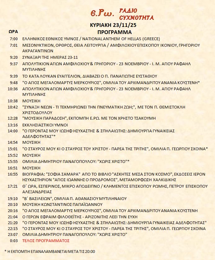 23 Νοεμβρίου 2025 σε ΑΡΧΕΙΑ ΗΧΟΥ, ΕΡΩ - ΡαδιοΣυχνότητα, ΟΠΤΙΚΟΑΚΟΥΣΤΙΚΟ ΥΛΙΚΟ Σήμερα 23/11/25, μπορείτε να ακούσετε: Γιὰ τὴ σύνδεση μπορεῖτε νὰ πατήστε στην παρακάτω εικόνα : ή χρησιμοποιήσετε τὸ παρακάτω link : Πρόγραμμα Λειτουργίας Ραδιοφώνου ΕΡΩ: “Ε.Ρω. – ΡαδιοΣυχνότητα”https://welove.radio/radio/ero-radiosixnotita/ Καλή σας ακρόαση Ετικέτες - Σχετικά Θέματα ΕΡΩ ΡΑΔΙΟΦΩΝΟ ΕΡΩ-ΡΑΔΙΟΣΥΧΝΟΤΗΤΑ Προηγούμενο