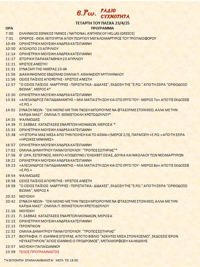 23/4/25 – Πρόγραμμα Λειτουργίας Ραδιοφώνου ΕΡΩ: “Ε.Ρω. – ΡαδιοΣυχνότητα”