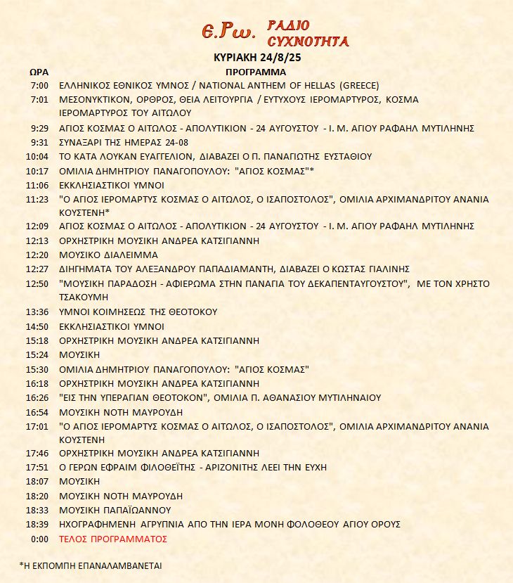 24 Αυγούστου 2025 σε ΑΡΧΕΙΑ ΗΧΟΥ, ΕΡΩ - ΡαδιοΣυχνότητα, ΟΠΤΙΚΟΑΚΟΥΣΤΙΚΟ ΥΛΙΚΟ Σήμερα 24/8/25, μπορείτε να ακούσετε : Γιὰ τὴ σύνδεση μπορεῖτε νὰ πατήστε στην παρακάτω εικόνα : ή χρησιμοποιήσετε τὸ παρακάτω link : Πρόγραμμα Λειτουργίας Ραδιοφώνου ΕΡΩ: “Ε.Ρω. – ΡαδιοΣυχνότητα”https://welove.radio/radio/ero-radiosixnotita/ Καλή σας ακρόαση Ετικέτες - Σχετικά Θέματα ΕΡΩ ΡΑΔΙΟΦΩΝΟ ΕΡΩ-ΡΑΔΙΟΣΥΧΝΟΤΗΤΑ Προηγούμενο