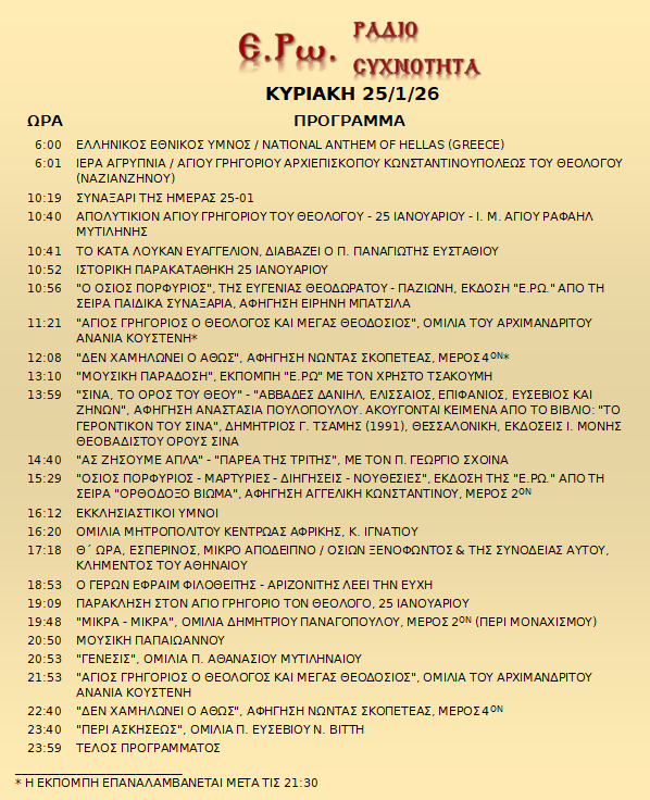 25 Ιανουαρίου 2026 σε ΑΡΧΕΙΑ ΗΧΟΥ, ΕΡΩ - ΡαδιοΣυχνότητα, ΟΠΤΙΚΟΑΚΟΥΣΤΙΚΟ ΥΛΙΚΟ Σήμερα 25/01/26, μπορείτε να ακούσετε: Γιὰ τὴ σύνδεση μπορεῖτε νὰ πατήστε στην παρακάτω εικόνα : ή χρησιμοποιήσετε τὸ παρακάτω link : Πρόγραμμα Λειτουργίας Ραδιοφώνου ΕΡΩ: “Ε.Ρω. – ΡαδιοΣυχνότητα”https://welove.radio/radio/ero-radiosixnotita/ Καλή σας ακρόαση Ετικέτες - Σχετικά Θέματα ΕΡΩ ΡΑΔΙΟΦΩΝΟ ΕΡΩ-ΡΑΔΙΟΣΥΧΝΟΤΗΤΑ Προηγούμενο