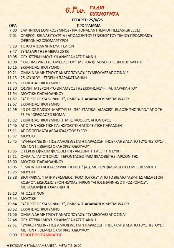 25 Ιουνίου 2025 σε ΑΡΧΕΙΑ ΗΧΟΥ, ΕΡΩ - ΡαδιοΣυχνότητα, ΟΠΤΙΚΟΑΚΟΥΣΤΙΚΟ ΥΛΙΚΟ Σήμερα 25/6/25, μπορείτε να ακούσετε : Γιὰ τὴ σύνδεση μπορεῖτε νὰ πατήστε στην παρακάτω εικόνα : ή χρησιμοποιήσετε τὸ παρακάτω link : Πρόγραμμα Λειτουργίας Ραδιοφώνου ΕΡΩ: “Ε.Ρω. – ΡαδιοΣυχνότητα” Καλή σας ακρόαση Ετικέτες - Σχετικά Θέματα ΕΡΩ ΡΑΔΙΟΣΥΧΝΟΤΑ ΕΡΩ ΡΑΔΙΟΦΩΝΟ Προηγούμενο